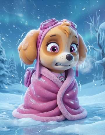 软3D粘土风,萌趣小狗戴围巾,温馨卡通场景,充满可爱与趣味感,适合节日氛围。