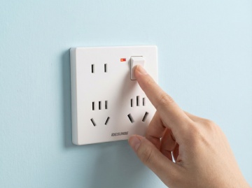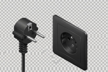 极简主义风格的3D立体插头图标,插头主体采用光滑的深灰色金属质感,带有细微的拉丝纹理,插头顶端的两个插脚呈现出亮银色的反光效果,插头正面中央有一个醒目的亮蓝色闪电符号,闪电符号带有渐变光泽,仿佛蕴含能量,插头下方连接着一根黑色的橡胶线缆,线缆自然弯曲,末端带有轻微的阴影效果,整个图标被一个浅灰色的圆形边框包围,背景为纯白色,整体设计简洁现代,线条流畅,具有强烈的科技感和品牌标识性,适合作为电力、能源或科技产品的LOGO设计元素。