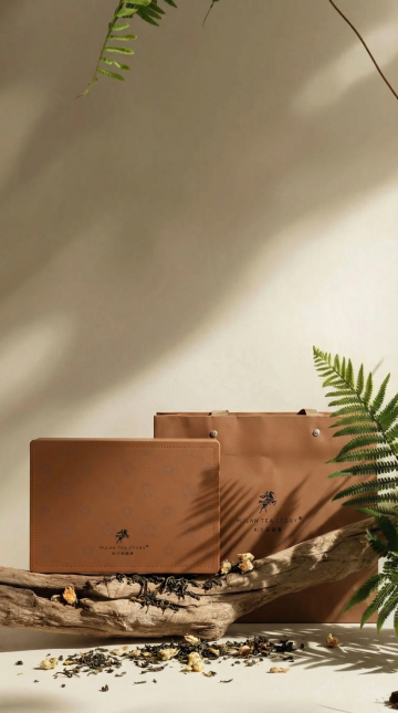 质朴原木、紫砂茶壶与暖调斑驳光影交融,营造出温润治愈又松弛的氛围,尽显天然茶饮的纯粹质感。