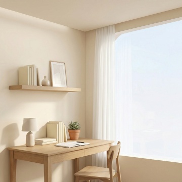 现代简约风格室内场景,不同角度和布置的大窗户,窗外是蓝天白云下的城市与绿色树林景观,窗台上摆放着绿植盆栽、透明玻璃杯和书籍,室内有白色懒人沙发、浅色地毯和木质小桌,温暖的自然光透过窗户洒入,光影柔和,色调以白色、浅木色和自然绿色为主,整体氛围明亮、宁静、舒适,展现不同窗户设计在空间中的布局与采光效果,突出窗景与室内陈设的和谐统一。