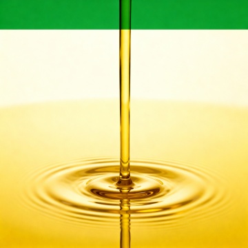 微距镜头,一滴琥珀色的特级初榨橄榄油正以慢动作姿态从手工黄铜滴管末端分离,形成完美的泪滴状垂坠形态,底部已接触意大利陈年橡木桶内壁凝结的油膜,激起五道层层扩散的金色涟漪,油膜表面泛着虹彩光泽并悬浮着三枚微小气泡,背景是托斯卡纳黄昏的橄榄木纹理,侧逆光穿透油滴形成内部纤毫毕现的流动纹路,空气中弥漫着百里香与迷迭香的分子光晕,色调是温暖的琥珀金与橄榄绿的微妙交融,凝固油脂缓缓包裹木质纹理的瞬间质感。