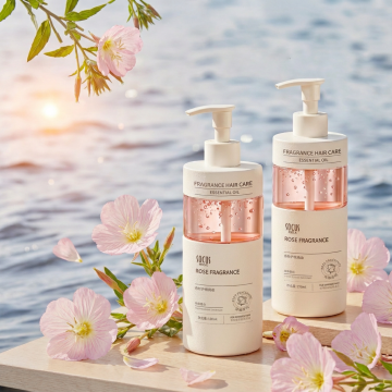 纯色背景上,6个不同图案的洗发水系列素材集合规整排布,每个洗发水瓶身设计简约,瓶身为白色圆柱形,瓶盖为白色按压式,分别带有栀子花、玫瑰花、小雏菊、薰衣草、樱花、蓝风铃的相应花卉图案,花卉图案色彩清新自然,与白色瓶身形成和谐对比,整体画面色彩清新自然且色调变换,背景简洁干净突出洗发水和花卉主体,营造出清新、自然、雅致的氛围,具有良好的视觉层级和信息传达效率,符合护肤品的宣传目的和目标受众审美,无文字,高清晰度,柔和光线,真实材质感,瓶身有细腻的光影过渡和轻微的反光效果,花卉图案细节清晰、精致,排列整齐有序,视觉上平衡舒适。