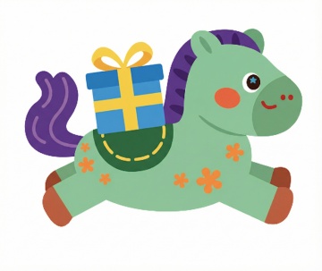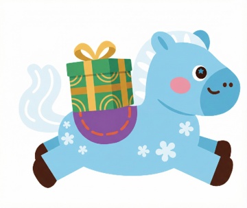 可爱感十足的拟人风小独角兽,搭配梦幻彩虹与星星爱心,采用扁平插画风格,充满童趣与节日欢乐氛围。