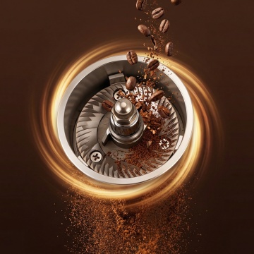 超写实摄影风格的咖啡背景,深黑色背景凸显主体,画面下方是堆积的深棕色咖啡粉,质感细腻带有颗粒感,大量完整饱满的烘焙咖啡豆从咖啡粉上方动态飞溅而起,咖啡豆表面有光泽和清晰的纹路,飞溅过程中扬起无数细小的咖啡粉末,形成自然的动感轨迹,光线从斜上方照射,在咖啡豆和咖啡粉上形成明亮的高光和深邃的阴影,整体氛围温暖而富有活力,突出咖啡的浓郁质感与动态美感,无文字、LOGO及其他装饰元素。