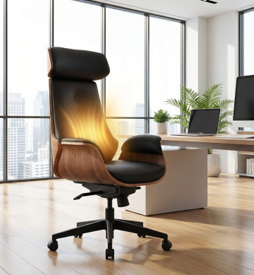 帮我把这张一椅子更换成三张不同角度,背景都要极简高级商务办公室空间