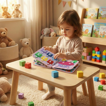 一个小孩坐在沙发上翻阅这本书