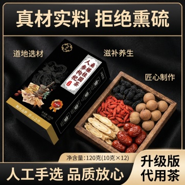 国潮风结合重拟物设计,水墨元素点缀,复古中式包装呼应传统中医场景,搭配双11促销标识,营造浓厚节日促销氛围。
