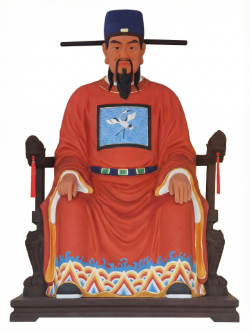 画面中包拯身着官服,手持卷宗,背景融入象征公正的天平和清正廉洁的莲花,整体色调庄重沉稳,展现出刚正不阿、清廉奉公的形象。