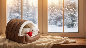 以图中的猫窝为元素,可爱安全的猫窝,设计6张跟猫窝关的图,可以适当加一些英语文字点缀一下,比例 「16:9」