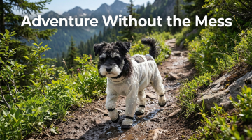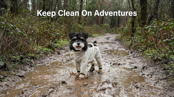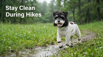 以图中的狗狗衣服为元素,狗狗户外散步/远足防污,设计6张跟狗狗衣服有关的图,英语,比例 「16:9」