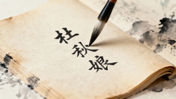一张中式风格的背景素材图,画面干净整洁。前景是一本微微卷起的古旧线装书,泛黄的宣纸上写满了工整的黑色毛笔汉字,纸张边缘略带磨损,展现出岁月的痕迹。背景是朦胧的中国山水画风格,远山轮廓用墨色晕染,呈现出淡雅的赭石色和深棕色渐变,营造出宁静悠远的氛围。整体光影柔和,光线从左上方斜射下来,在书页上形成自然的明暗过渡和细微的高光,突出纸张的质感和文字的立体感。画面构图采用近实远虚的手法,主体书籍清晰聚焦,背景山水虚化,色调统一在古朴的暖棕色系中,具有浓厚的传统文化韵味,适合作为各类中式主题设计的背景素材。