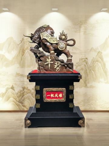 萌趣国风写实风设计,红棕陶瓷小马与祥云纹样结合,营造红火喜庆的马年氛围
