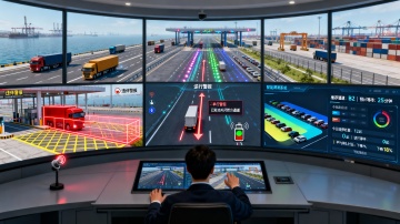 监控员正协调各方进行处置。整体氛围冷静专注,科技感精确地体现在多源数据融合可视化、智能预测轨迹与协同调度界面上。画面强调AI识别体系如何作为“全时段的航道哨兵”,通过特征库比对、环境适应与融合预警,将分散、被动的监管升级为主动、精准的智能防线,切实守护繁忙航道的秩序与安全。比例16:9