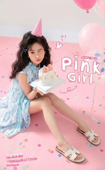 甜美元气少女手持樱桃,红毛衣与蝴蝶结点缀,轻拟物风结合东亚美学,柔和色调营造清新时尚感。