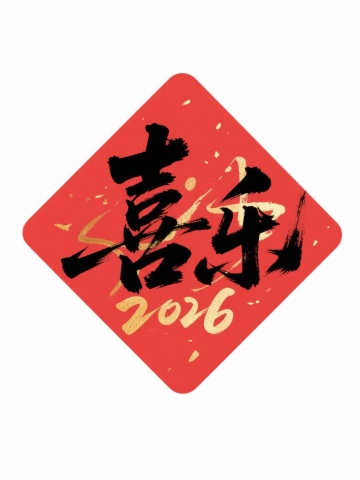 红底白字双色设计,大字风手写体搭配烟花元素,喜庆感十足,印刷风呈现新年祝福,迎接2026。