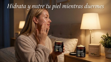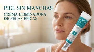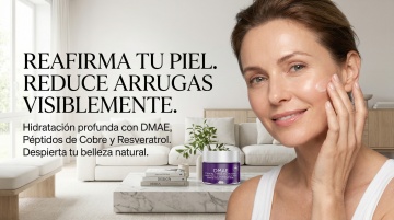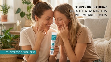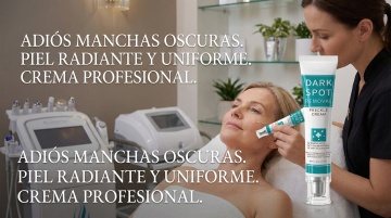 以图中的祛斑面霜为元素,温和呵护面部均匀肤色焕亮水润日常护理,设计6张跟祛斑面霜有关的图,比例 「16:9」,语言是西班牙语,欧美女模特