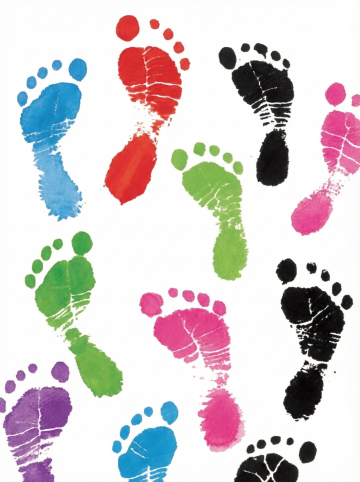 线条简约的足部示意图,以浅蓝、淡紫、米黄三种色块区分不同区域,白色背景,四只脚呈现不同角度的自然摆放姿势,线条清晰流畅,色块边缘平滑规整,无文字及装饰元素,整体风格简洁明了,具有医学或解剖学示意图的精确感。