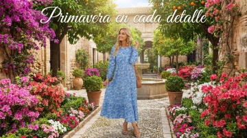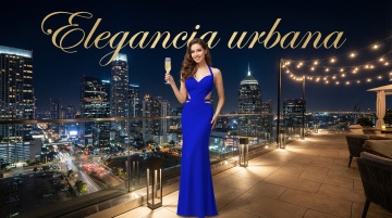 以图中的女士西装外套为元素,设计6张跟女士西装外套有关的图,比例 「16:9」,语言是西班牙语