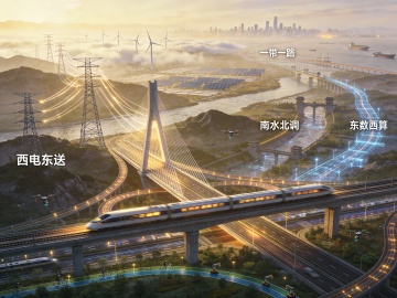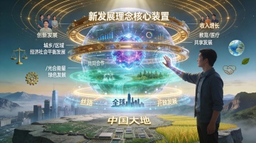 画面中心是一群自信多元的中国青年(两男两女,包含工程师、科研人员、创业者、艺术家),他们并肩站立在一座现代观景台上,眺望远方。观景台采用流线型设计,融合钢结构与玻璃元素。