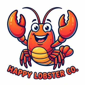 可爱卡通龙虾,拟人化设计,软3D风格,描边扁平风,喜庆趣味感十足,适合节日品牌标识。