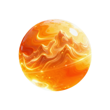 根据参考图的样式,生成一个用来描绘阳光,有温暖之意,代表着希望、光明与生机的星球,形状为立体球形,生成8个方案