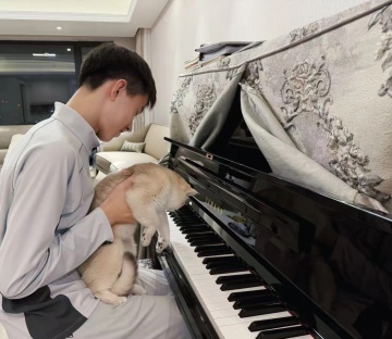 胶片风实景拍摄,少女与萌犬互动温馨可爱,柔和色调传递舒适感,Canon贴纸增添趣味细节。