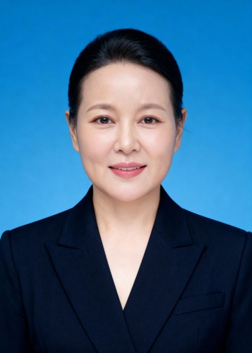 保留人物脸型、发型、年龄特征生成标准职场形象照,50MM焦段,F/4光圈(F/2.8-F/4区间),相机与人物距离3米,横向16:9比例(左右预留环境空间),人物占画面60%,入镜头部至膝盖上方5CM,平视视角,人物居中构图,头肩比例协调,身穿深墨蓝色西装,内搭白色衬衫,精致且高级的深蓝色斜向微微渐隐光泽感极细条纹商务感领带,下装黑色西裤搭配黑色皮带;正面抱胸姿态,肢体舒展的站立姿态,自信从容;主