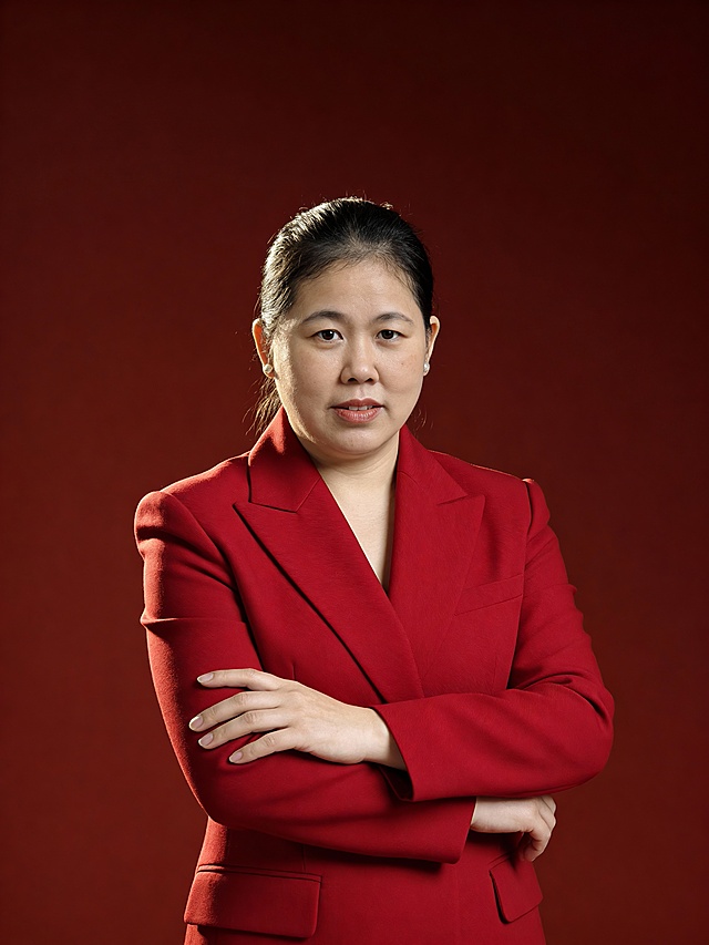 参考第一张图保留人物脸型、年龄等特征生成职场形象照,参考第二张图人物占位和比例,标准焦段50mm,F/4光圈(F/2.8-F/4区间),平视视角(镜头与人物视线齐平);人物占画面70%,人物居中(居中构图),位于画面中心,为视觉聚焦点,入境范围头部及以下至臀部下方10cm(半身像);左右留少量背景空间;头部与画面顶部保留5%空间;头部发型完整;头肩比例协调,主体锐利,美颜磨皮韩式精致自然的浓妆,均匀肤色提亮肤色,外穿V领深灰色西装外套(偏暗),内搭白色V领衬衫;深灰色西裤(偏暗);发质柔顺光泽;双臂交叉于胸前,姿态舒展,传递出自信从容的气场.表情自然,干练;微笑;画质清晰,头部完整,高清棚拍专业摄影人像写真,均匀肤色,头部完整,结构准确;光比1:1.5,4800K中性光,修饰脸型,肤质哑光细腻,面部微微雾面柔光,轻透裸肌感,真实毛孔纹理,32K画质,去除人物之外的所有元素,零噪点降噪,极简中灰度(偏冷)纯色背景。详情