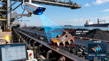 整体氛围在港口的繁忙中凸显智能系统的精准与高效。科技感精确地体现在多传感器数据可视化、AI判定界面与自动控制指令的联动逻辑上。风格为高度写实的现代工业场景,强调AI跑偏检测与纠偏系统如何作为“自主运维的智能神经”,将传统依赖人工巡检的机械问题,转化为可预测、可预警、可自动校正的闭环管理,保障港口运输动脉的稳定与连续。比例16:9