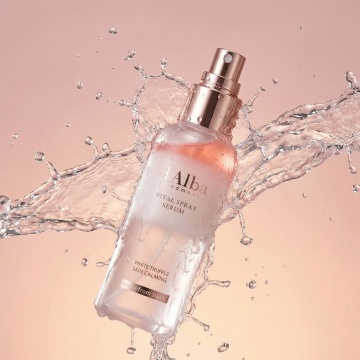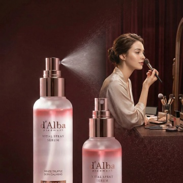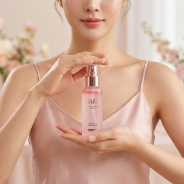奢华感与优雅感交织,3D重拟物风设计,简约主义玻璃瓶身搭配金属喷头,面料风丝巾点缀,尽显高端质感。