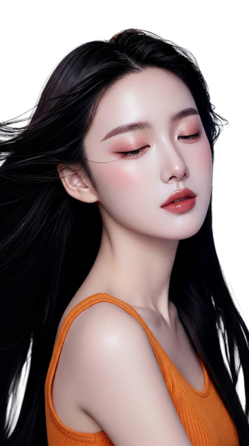 一张以女性面部为特写的美妆护肤主题照片,采用柔和的自然光从上方和侧面均匀照射,营造出明亮、纯净、温暖的氛围。画面中,一位年轻女性闭着双眼,嘴角微微上扬,露出恬静愉悦的微笑,双手轻轻捧起脸颊,姿态自然放松。她的皮肤呈现出极致的清透感、水润光泽和健康的粉嫩色调,肌肤表面仿佛覆盖着一层薄薄的精华液或保湿霜,反射出细腻的光泽,毛孔细腻几乎不可见,质感光滑柔嫩,充满弹性。深棕色的长发柔软地垂落在脸颊两侧,发丝轻盈飘逸,部分细碎的发丝自然散落,增添了画面的灵动与真实感。整体色彩以柔和的米白色为背景,衬托出肌肤的白皙与粉嫩,色调统一和谐,光影过渡自然,高光区域集中在额头、鼻梁、颧骨和下巴等面部高点,阴影柔和地勾勒出脸部的立体轮廓。照片的视觉焦点完全集中在女性完美无瑕的肌肤和愉悦的表情上,构图简洁大方,以人物面部为中心,背景干净无杂物,突出展现皮肤的水润状态和健康美感,传递出舒适、放松、享受护肤过程的情感,具有高度的视觉吸引力和信息传达效率,符合美妆护肤产品目标受众对理想肌肤状态的审美追求。