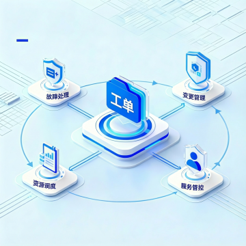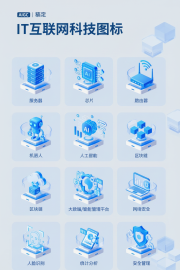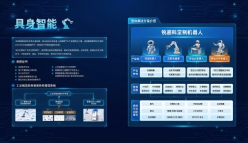 等轴视角的 3D 数字孪生工业场景,画面中心是一台未来感的电脑主机/控制中枢,显示悬浮的 AI 算法代码界面和数据云标识;周围环绕多个象征业务领域的 3D 模块:机械臂+输送平台(代表智能制造)、履带式特种机器人+水池反应堆模块(核电与异物检测)、医疗十字与手术监护界面模块(智慧医疗)、城市建筑+管道检测模块(城市排水识别)、摄像机/传感器模块(AI感知)。所有模块通过发光的数据线连接,构成信息中