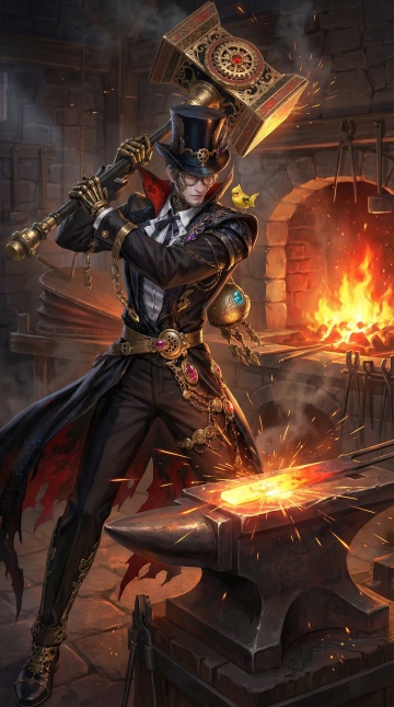 【人物】手持大锤的角色,身形健壮有力,动作沉稳充满爆发力,冷白皮(若为人类角色),肌肤质感真实,四肢肌肉线条明显,发丝随动作微微颤动且根根清晰,身着耐磨的服饰,表情专注坚毅,展现出砸击时的力量感