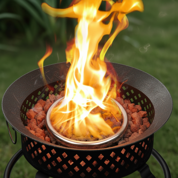 参考图一,给图二产品(烧烤架)添加人物双手各拿一根铁丝做出类似动作,在一个温暖阳光的天气,盘腿坐在地毯子上面,图二产品(烧烤架)放置在地毯子上,印度男子双手各拿一根和图一(双手铁棒)一样的铁棒,铁棒穿入产品(烧烤架)底部侧面两个孔洞位子(参考图一铁棒插入位子)