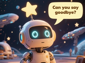 3D毛绒风格的白色机器人,头部有蓝色圆形天线,黑色面罩上有两个发光的蓝色椭圆形眼睛,身体和四肢为白色毛绒材质,关节处有蓝色装饰,坐在蓝色渐变的卷轴纸张上,左手抬起挥手,周围有黄色铅笔、橙色文件夹和金色星星装饰,整体采用柔和的光影效果,色彩以白色、蓝色为主,搭配黄色和橙色点缀,营造出可爱、温馨的氛围,具有清晰的视觉层级和简洁的设计感。