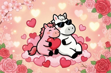 可爱感十足的拟人风小独角兽,搭配梦幻彩虹与星星爱心,采用扁平插画风格,充满童趣与节日欢乐氛围。