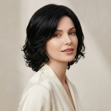 根据这款深黑色假发帮我生成3张电商主图,要求欧美女性面孔,不要改变假发的造型「图片1」「图片2」