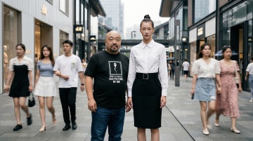 中式剪纸风与现代时尚融合,红色浮雕圆环框住优雅女性,国潮美学尽显,节日氛围浓厚。