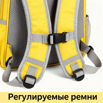 一个黄色户外背包,背包正面有黑色拉链和调节带,背包侧面有一个黑色网状口袋,黑色网状口袋中放置两个原图中的产品。