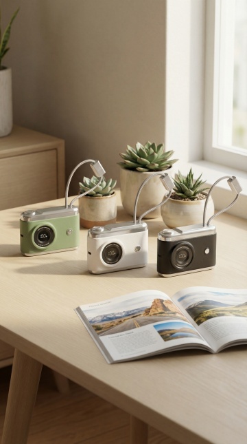 高分辨率摄影级产品渲染,专业单反相机,不同配色(如深空灰、冰川银、海军蓝、酒红色),不同样式(复古旁轴造型、现代无反设计、经典单反布局、模块化概念款),不同材质(磨砂金属机身、碳纤维纹理、哑光皮革包裹、光滑钢琴漆面板、阳极氧化铝),浅色背景(米白色、浅灰色、淡蓝色渐变),精确的产品细节展示,清晰的镜头结构,细腻的按钮与拨盘质感,柔和均匀的无影光源,高对比度,锐利的边缘,专业产品摄影风格,突出材质纹理与色彩差异,适合电商或产品宣传使用的多角度组合呈现。