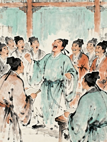 古典中式工笔风,描绘文人雅士授徒场景,水墨淡雅,尽显传统文化韵味。
