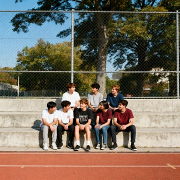 整体氛围:充满青春的生活气息,宁静又治愈,色彩真实自然,还原校园黄昏时分的惬意日常,无过度美化,突出写实质感。