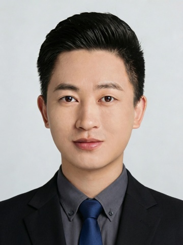 正式西装蓝色领带求职男生蓝底证件照