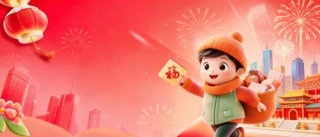 软3D粘土风,卡通女孩手持烟花,喜庆红衣点亮夜街,节日氛围浓厚。