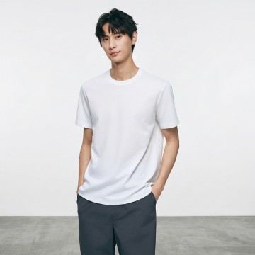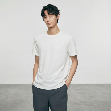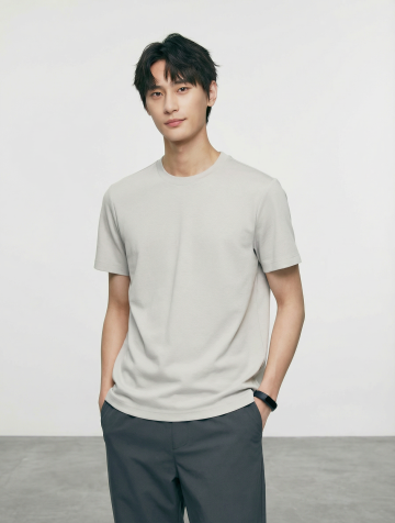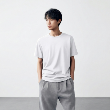 白底图衣服穿到模特身上 无颜色偏差 / 保留细节 场景:灰色地面与白色背景,光线自然,背景简洁 画质要求:写实,8k,高细节,对焦清晰,光线自然,无变形