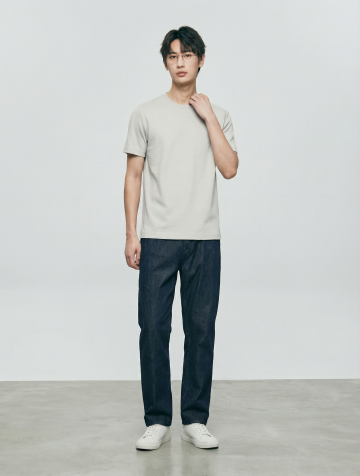 白底图衣服穿到模特身上 服装贴合:衣服完全贴合模特身形,无违和感,保留衣服原有版型 / 颜色 / 细节(如纽扣、印花、刺绣)无变形 / 无颜色偏差 / 保留细节 场景:灰色地面与白色背景,光线自然,背景简洁 画质要求:写实,8k,高细节,对焦清晰,光线自然,无变形