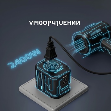 赛博朋克风格的智能手机充电场景,霓虹蓝与紫色渐变光效笼罩,手机屏幕显示动态赛博数据流图案,充电器和数据线呈现金属质感与霓虹灯带装饰,白色桌面转化为带有电路纹理的黑色高科技平台,背景墙变为布满全息投影广告和管线的未来都市夜景,整体光影对比强烈,充满未来科技感与机械美学,高细节,8K渲染,电影级构图