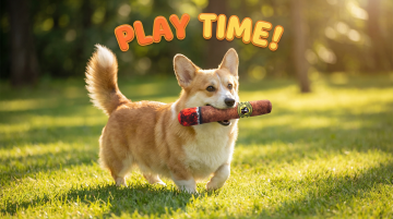以图中的趣味狗狗玩具为元素,吱吱作响的香烟造型狗狗玩具,设计6张跟趣味狗狗玩具有关的图,可以适当加一些英语文字点缀一下,比例 「16:9」