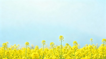 多量粉紫色波斯菊花海,波斯菊只占三分之一,搭配淡蓝朦胧天空