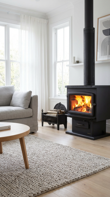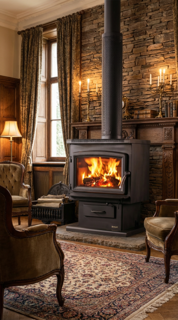 帮我把图中的壁炉换一个应用场景,在炉膛内加入火焰,要求真实,像照片一样